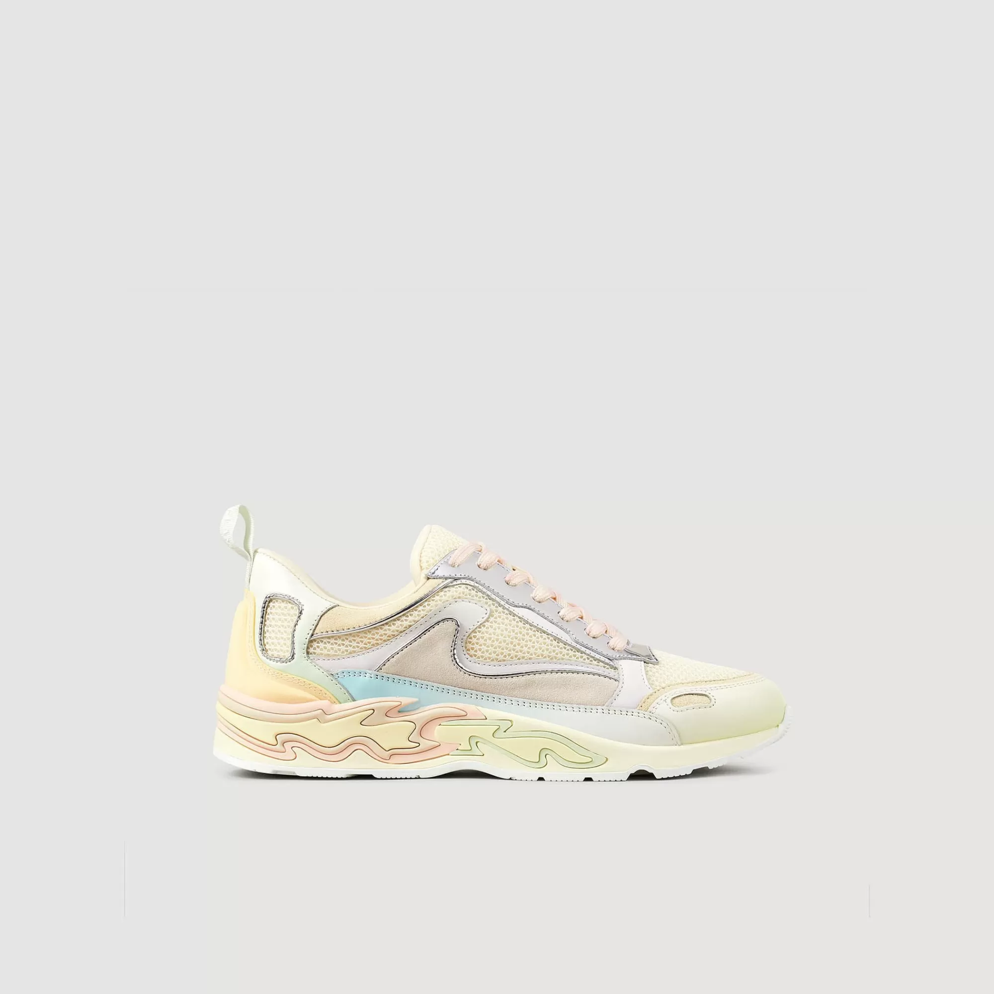 Flame sneakers van gemengde materialen met vetersluiting en kenmerkende zolen met veelkleurige details.