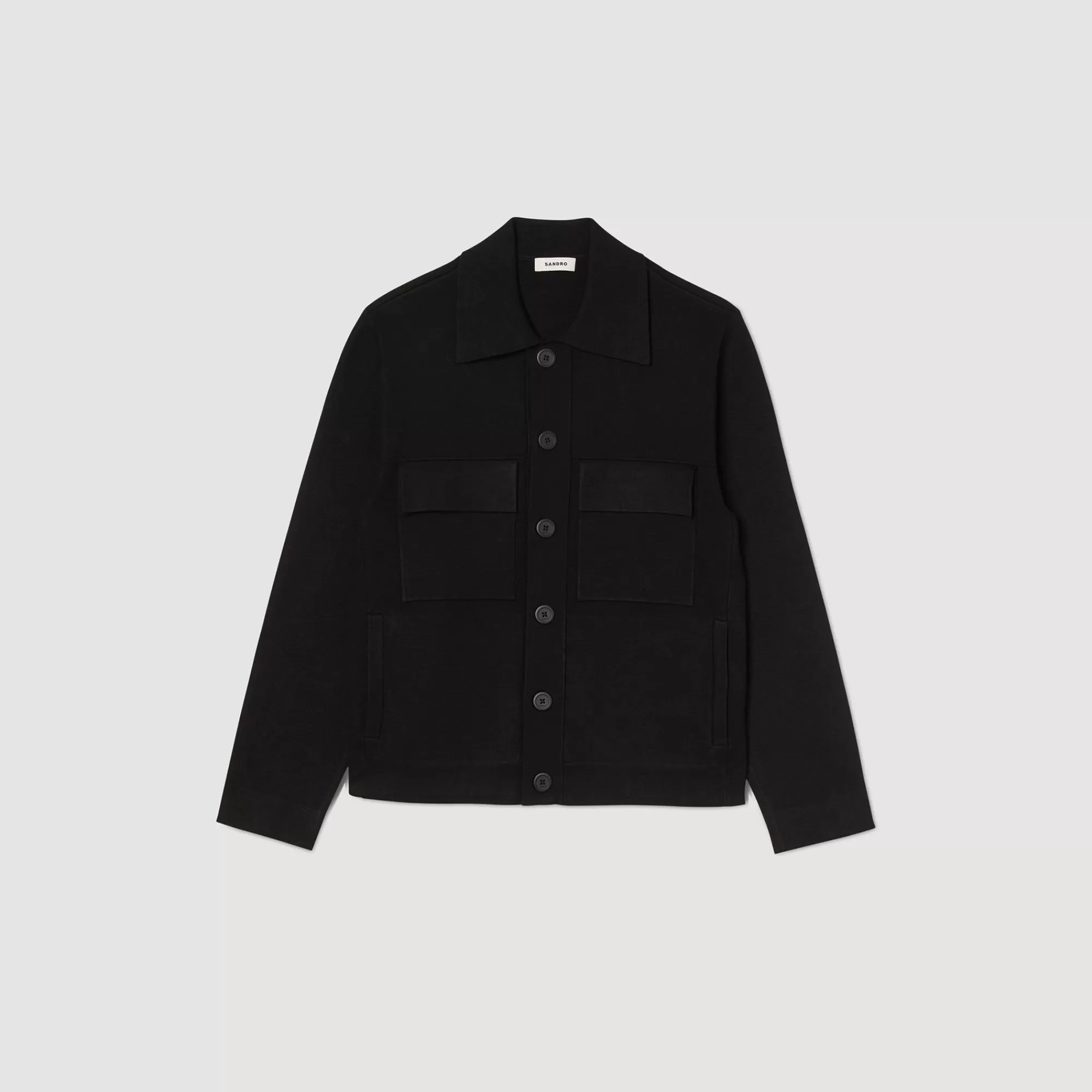 Jasje in milanomesh met een klassieke kraag, lange mouwen, een knoopsluiting, opgestikte borstzakjes en twee zakken aan de zijkant.